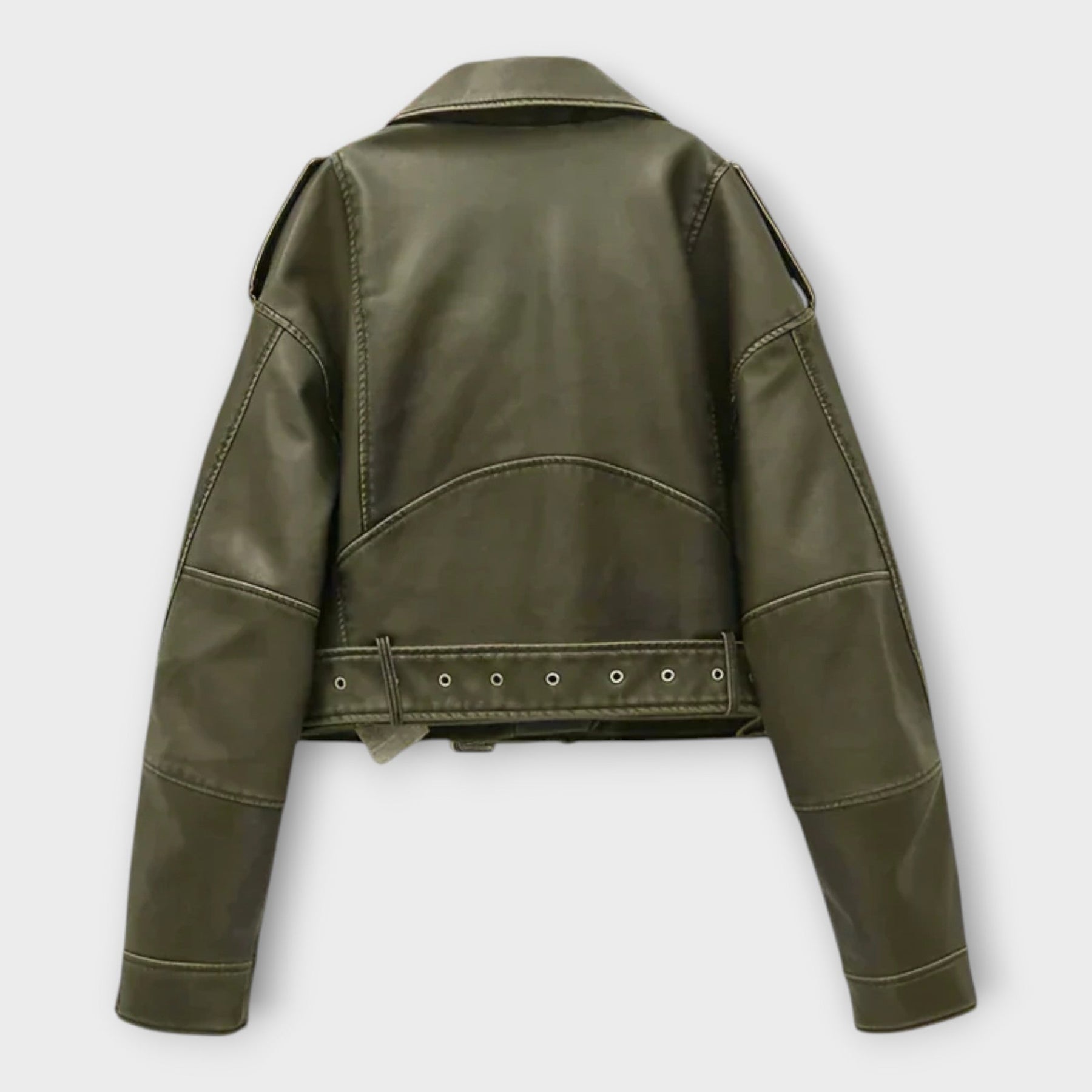 Opdag Amaya – en moderne kort læderjakke med bælte og sofistikeret æstetik, der fuldender enhver garderobe. Denne alsidige jakke passer perfekt til alt fra afslappede hverdagslooks til mere formelle arrangementer og giver et færdigt, stilfuldt finish.