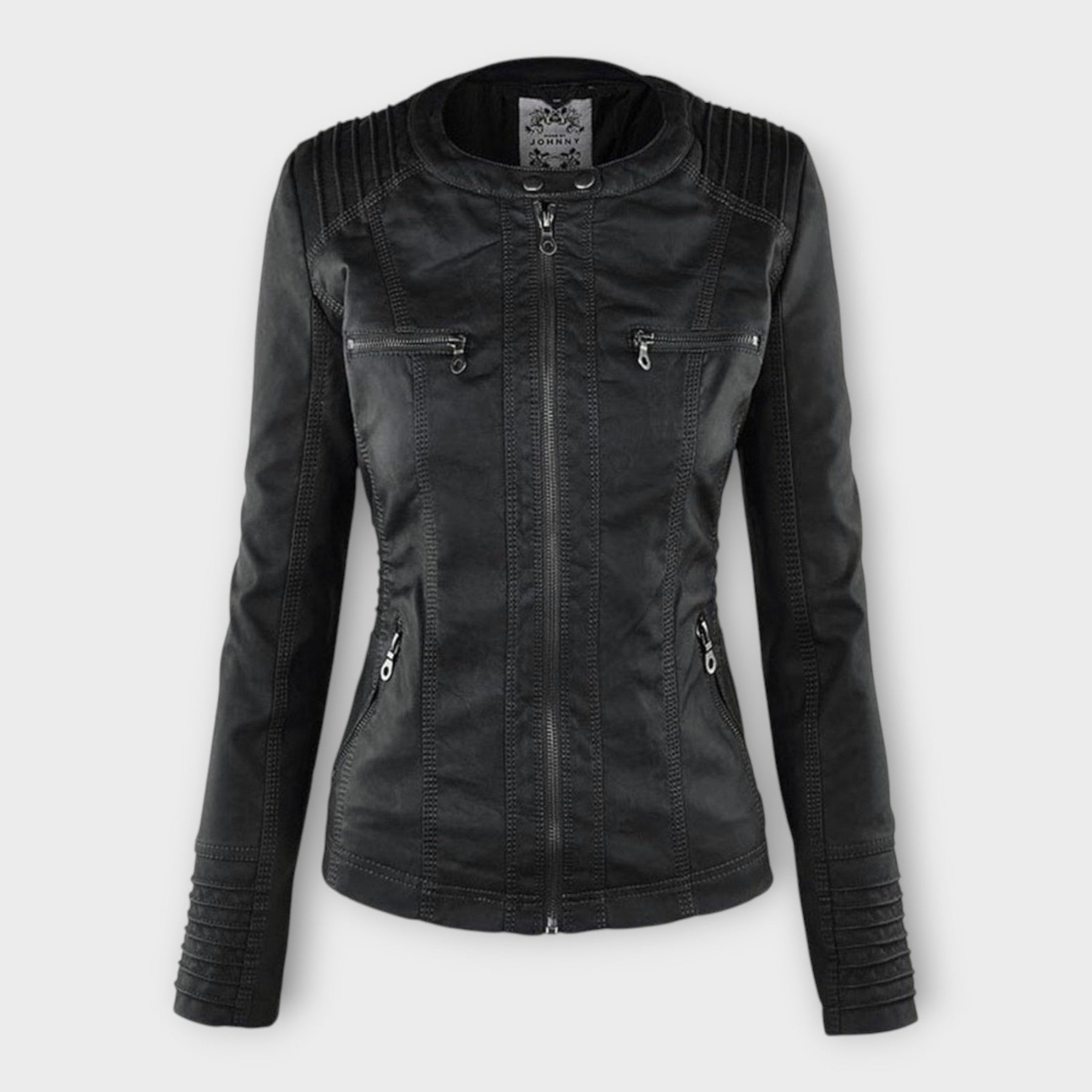 Tjaša er en moderne læderjakke med hætte og en tidløs linje, der giver dit look det perfekte touch af elegance og kant. Den alsidige stil gør det nemt at tilpasse jakken til dit daglige outfit, uanset om du går casual eller klæder dig op til en særlig anledning. Designet til at være både praktisk og sofistikeret, har jakken en blød tekstur, der giver en behagelig og elegant følelse i huden.