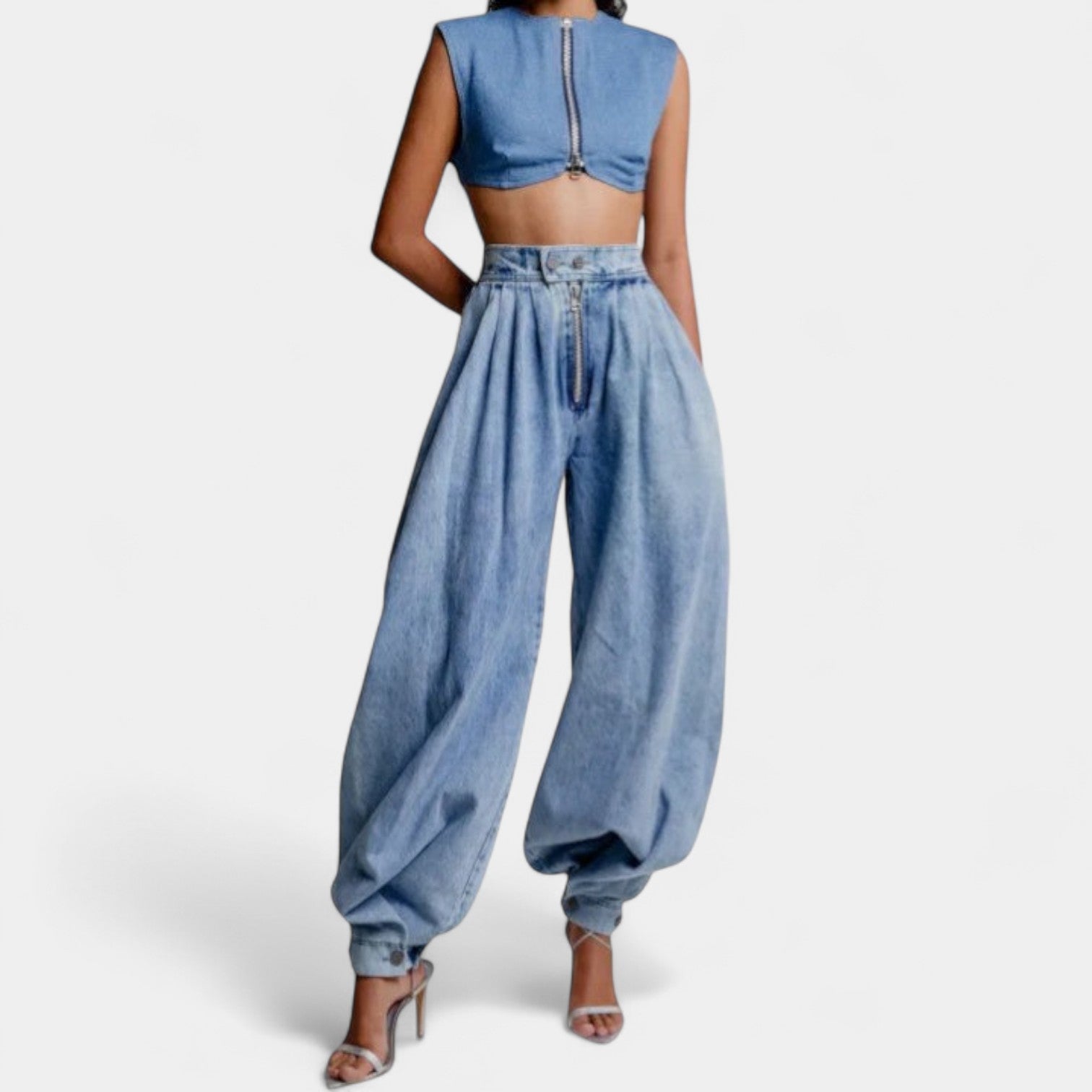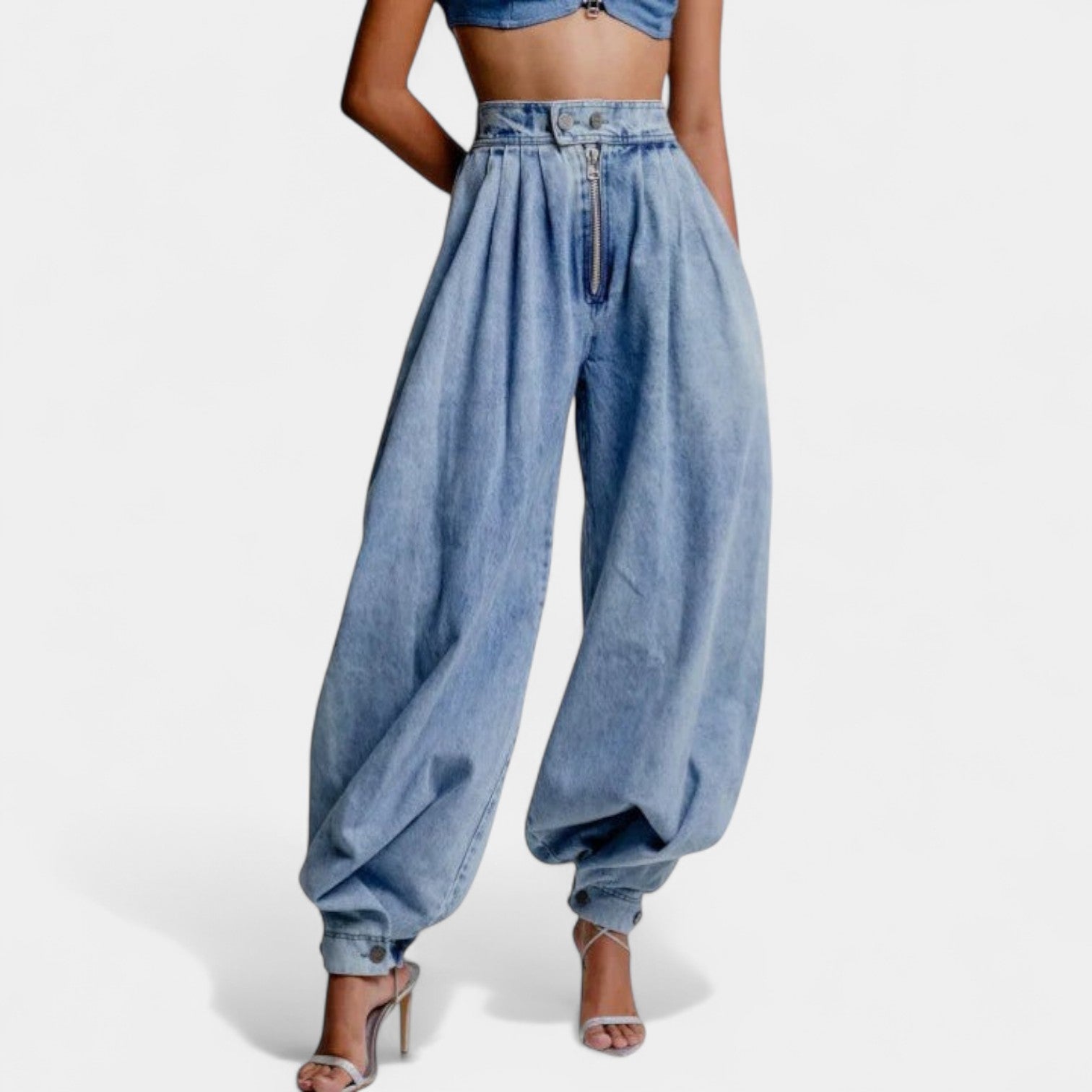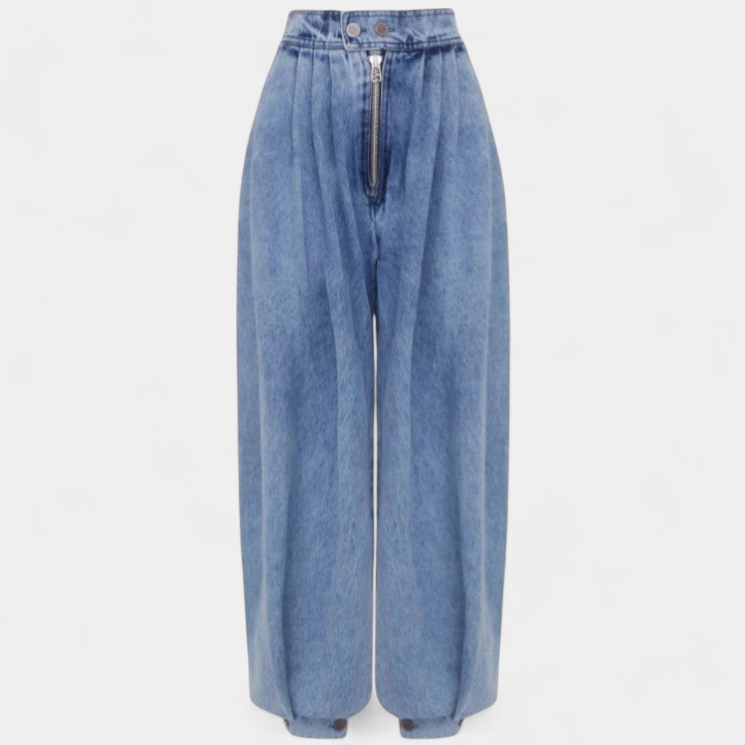 Visok pas poudari silhueto, široke hlačnice ustvarijo trendovski, sproščen videz. Zasnovane za svobodno gibanje, se odlično prilegajo telesu ter nudijo udobje in odličen kroj, zato jih zlahka kombinirate z različnimi vrhovi in postanejo osnova vaših vsakodnevnih kombinacij.