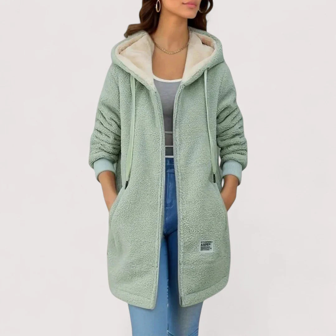 Odkrijte Ljudmila - Polarni plašč s kapuco, ki združuje udobje in eleganco. Z njegovo sodobno urbano estetiko se brez težav poda k različnim outfitom – od sproščenih dnevnih kombinacij do bolj prefinjenih opravil na prostem.