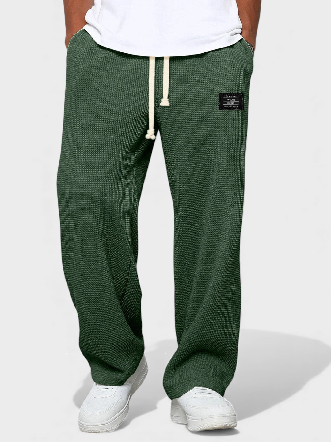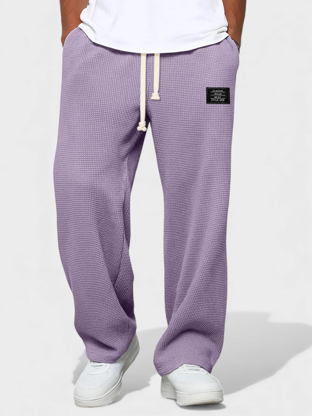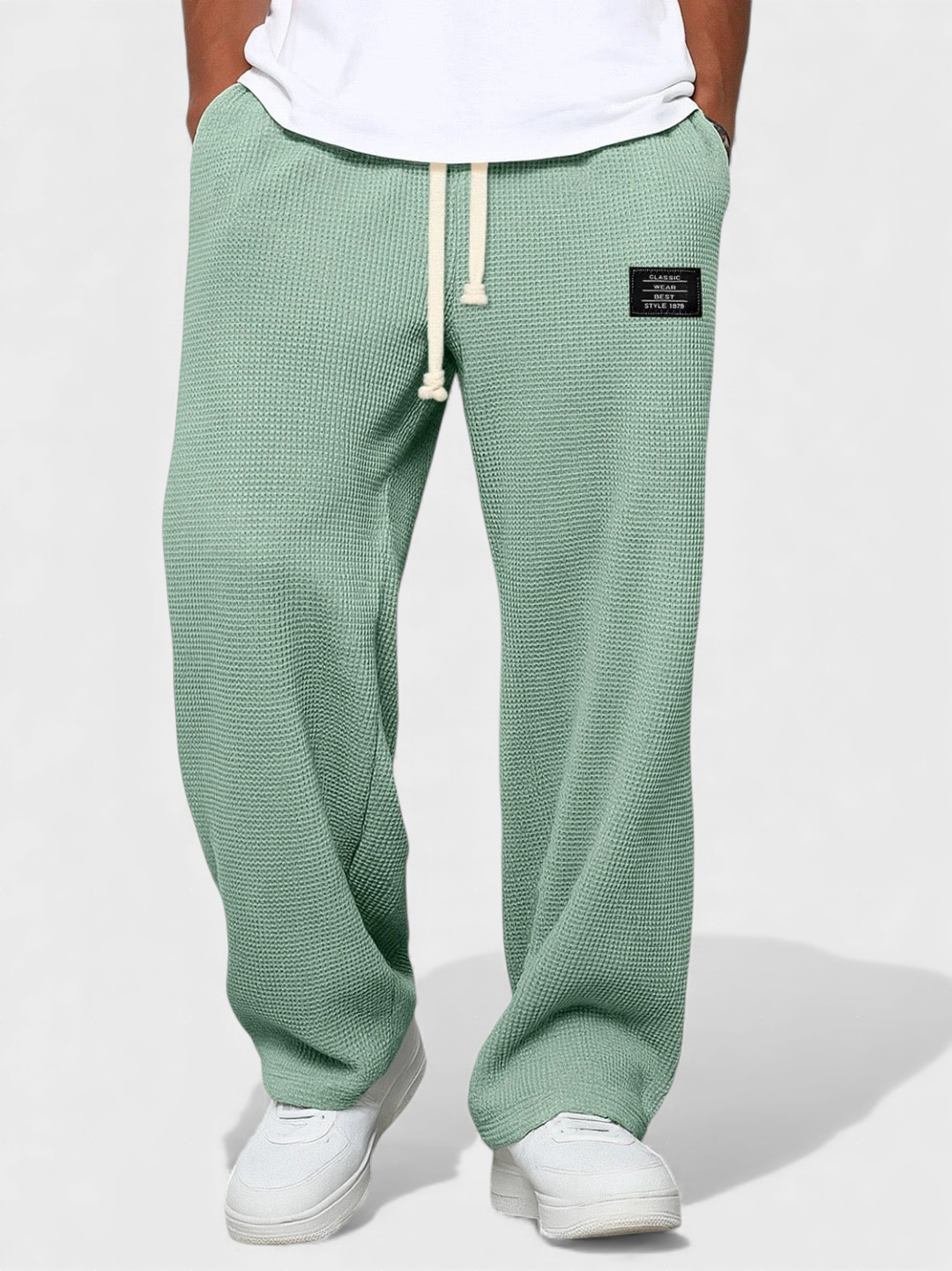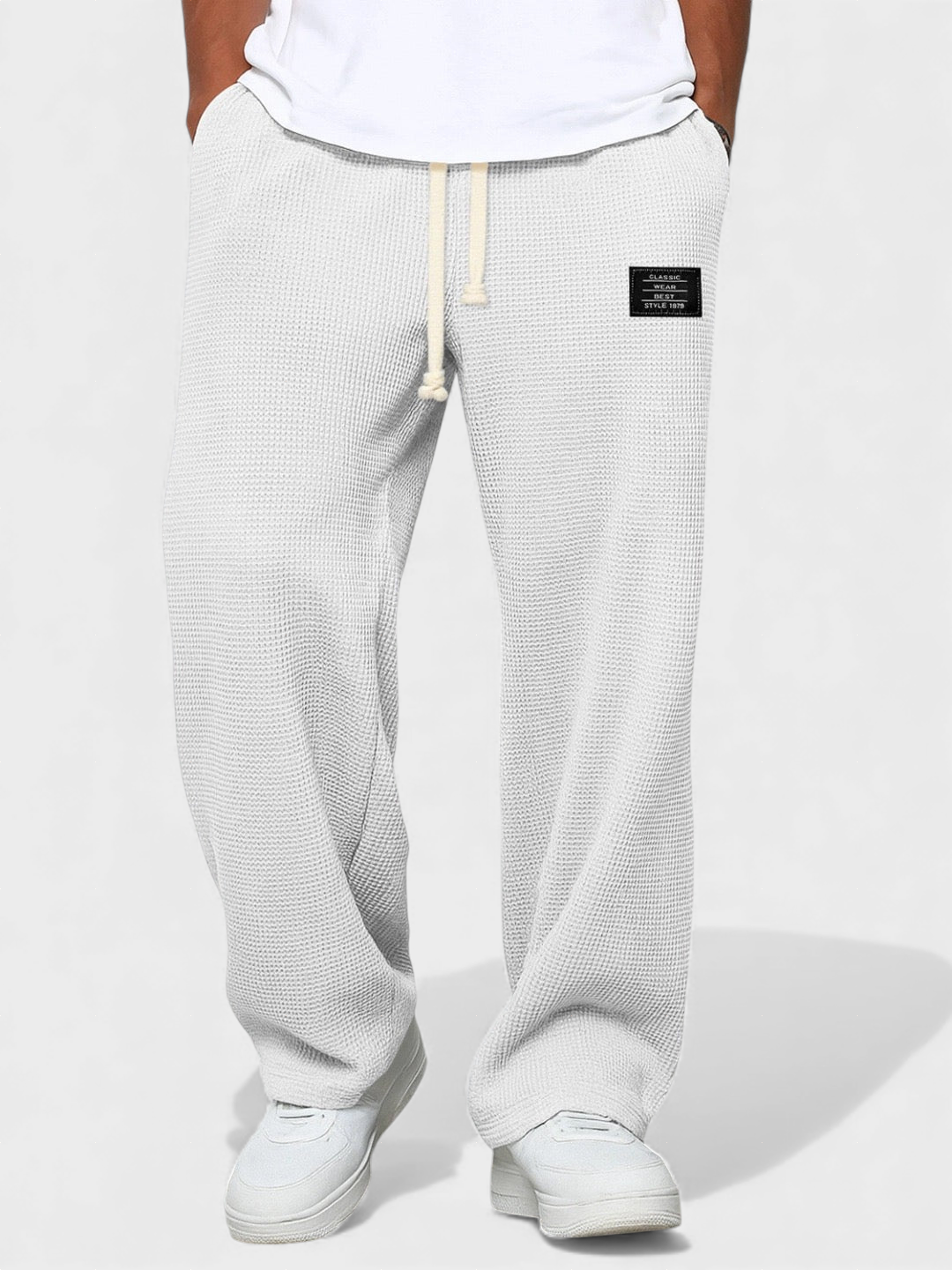 Zračen, mehak tkaninski material diha in prinaša udobje skozi ves dan. Nastavljiv pas zagotavlja popolno prileganje za različne postave, široke hlačnice pa nudijo svobodo gibanja. Minimalističen dizajn se enostavno poda k različnim zgornjim delom in čevljem, zato so primerni za domačo rabo in prosti čas.
