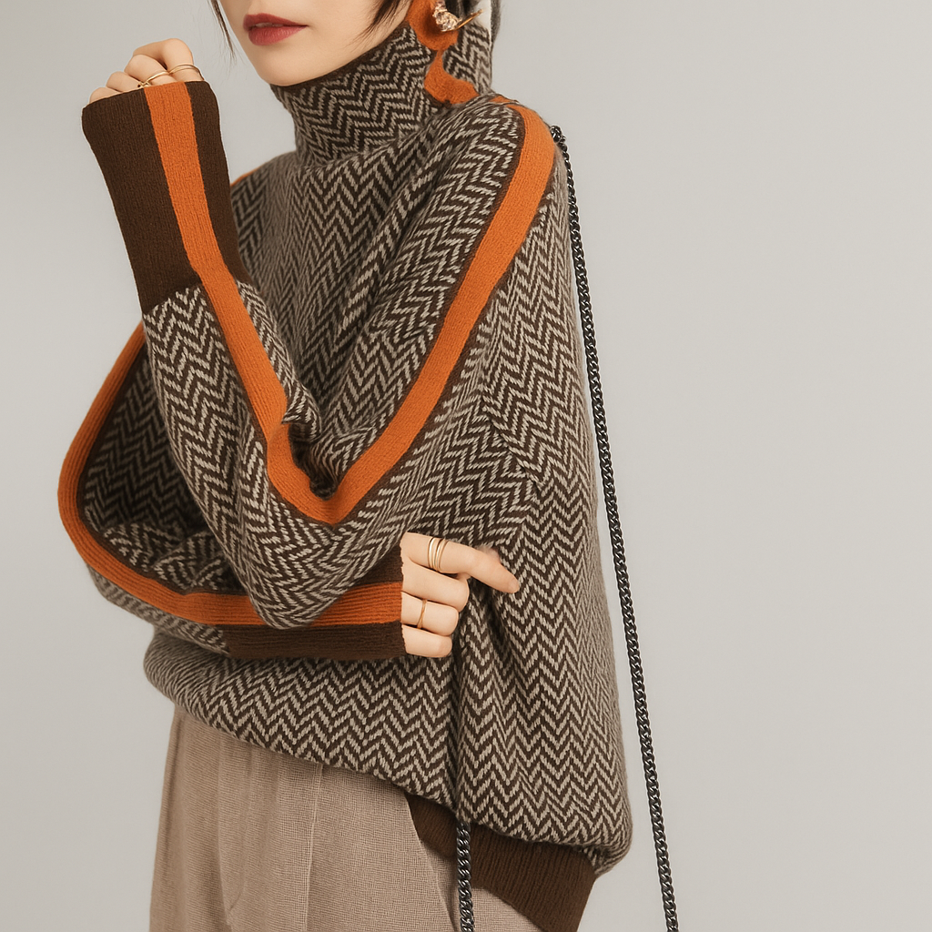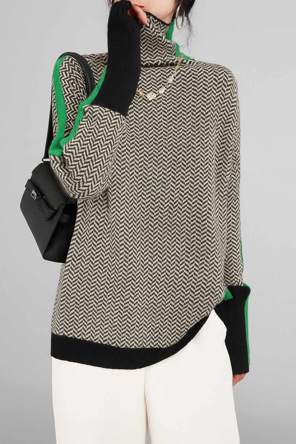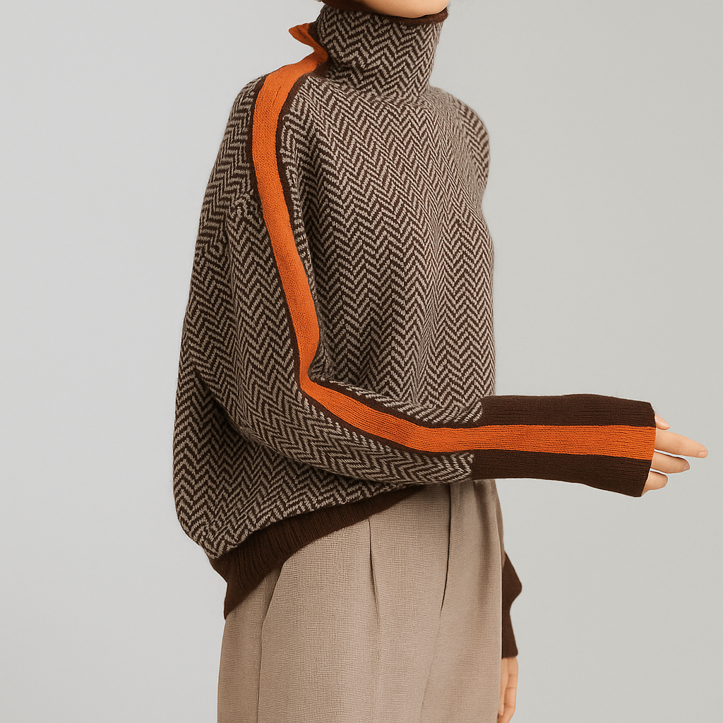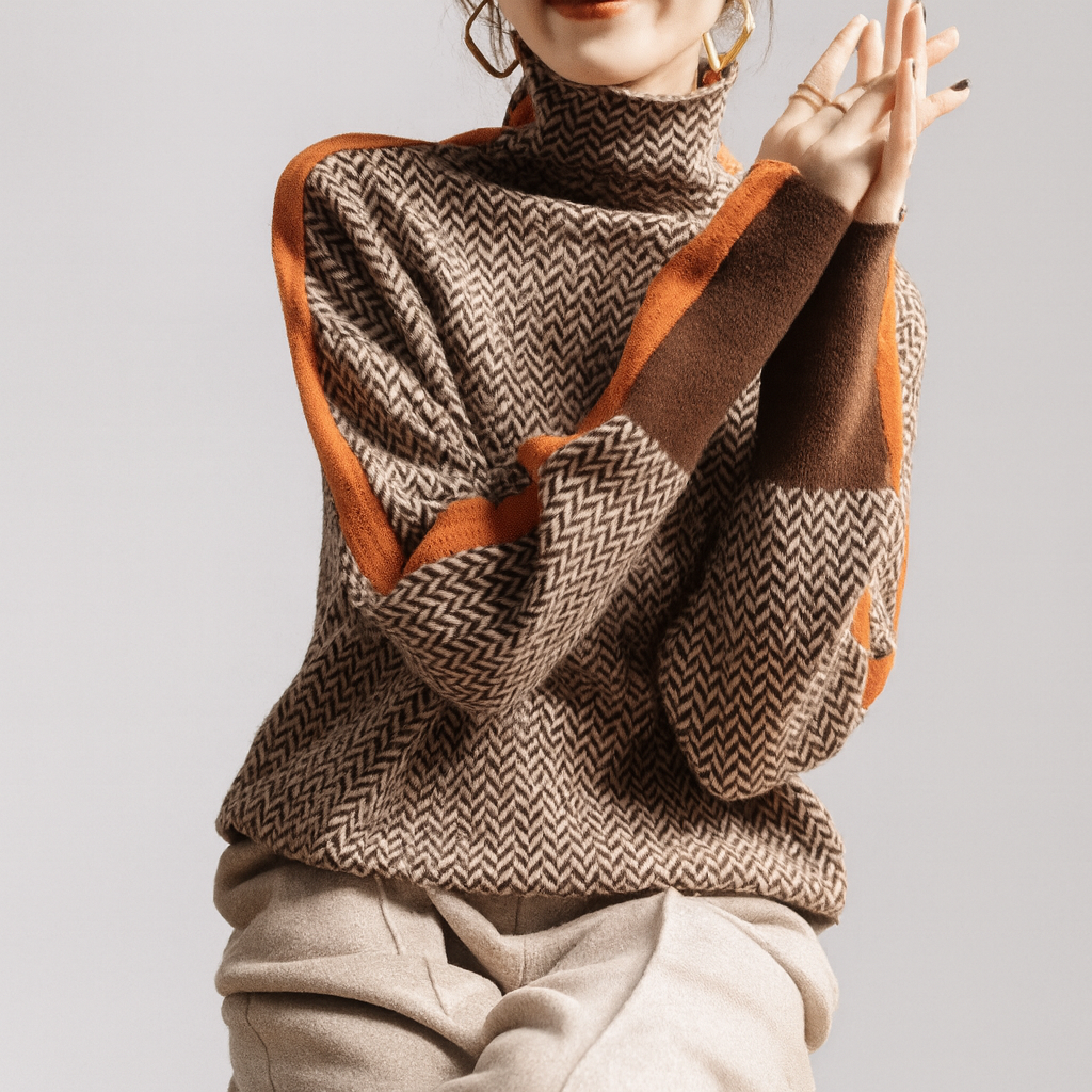 Visoko ovratni pulover z udobjem, ki združuje eleganco in sodobnost ter odlično dopolnjuje sako, srajco ali kavbojke.